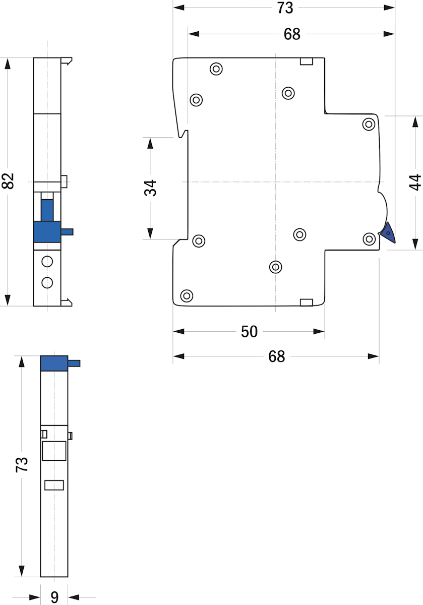 - Переключение происходит только от воздействия на боковой шток при срабатывании контролируемого автомата. От ручного управления переключение контактной группы не происходит